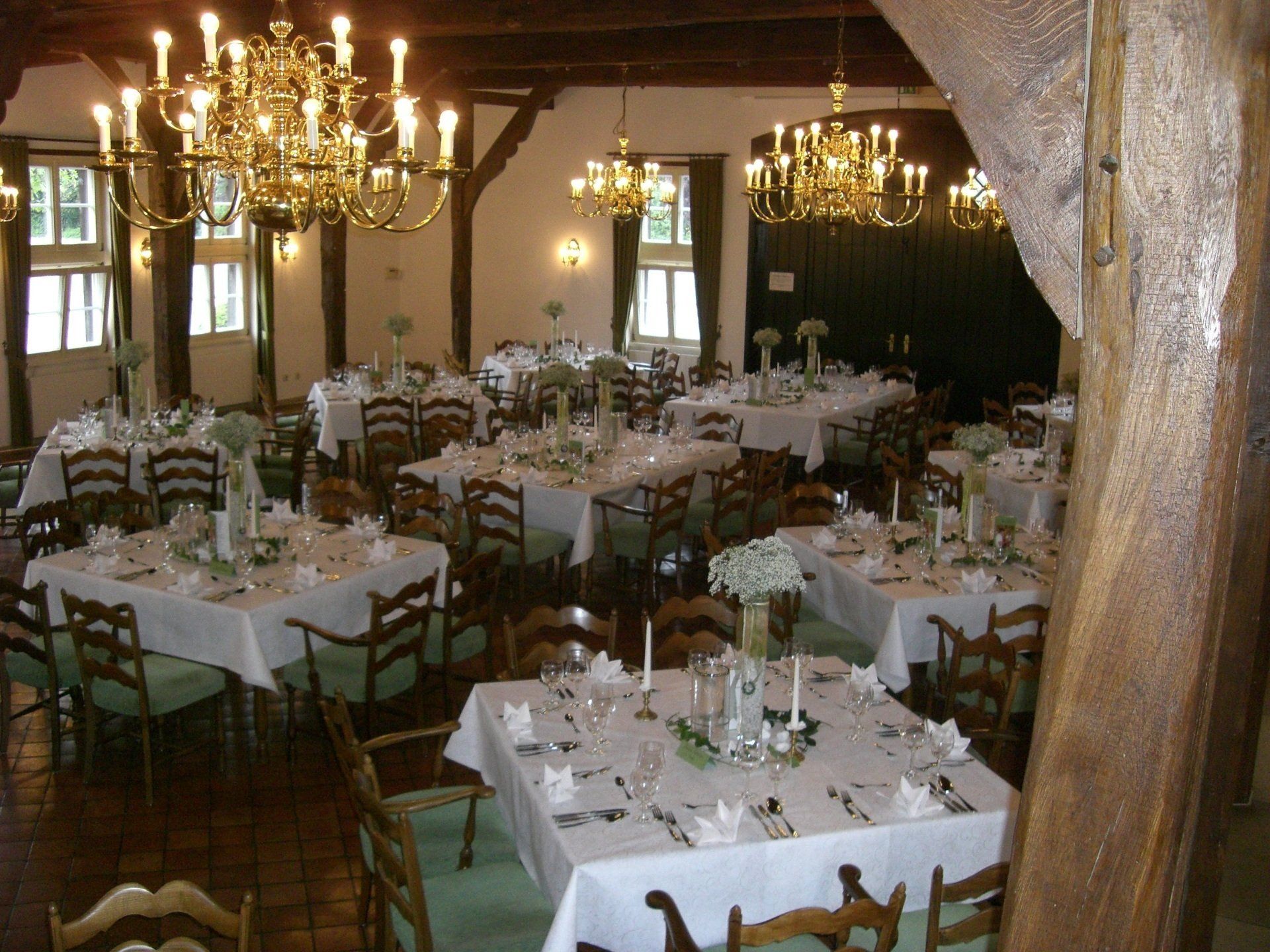 Egal ob Sie sich für das Haupthaus mit dem großen Saal, das Kaminzimmer, oder den kleinen Versammlungsraum mit Küche entscheiden – lassen Sie sich in eine andere Zeit entführen und genießen Sie ein einmaliges Event!